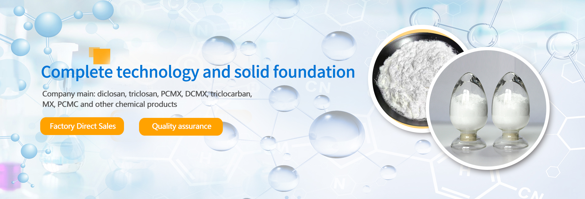 Shandong Aoyou was founded in 2010, the factory is located in Xiaying Chemical Industry Park, Changyi City.The company's main products are diclosan, triclosan, PCMX and other antibacterial products. It is widely used in personal care, anti-mildew and anti-bacteria of cosmetics, disinfection of home and public environment, disinfection of chemical supplies and medical equipment and other fields. It is the largest chlorine series in China and the largest antibacterial raw material production base.